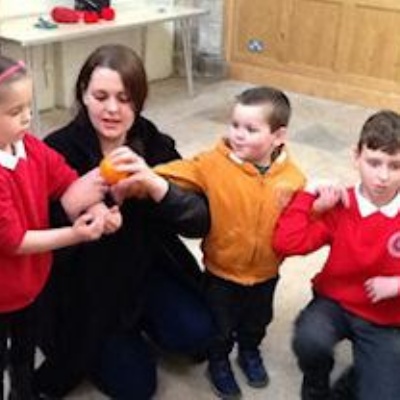 Creating a giant Christingle in the church.