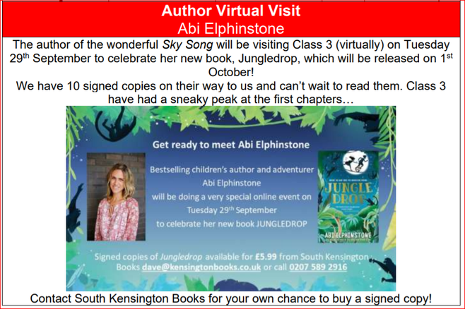As part of our English curriculum, each class enjoy a class novel or regular short stories or poems.