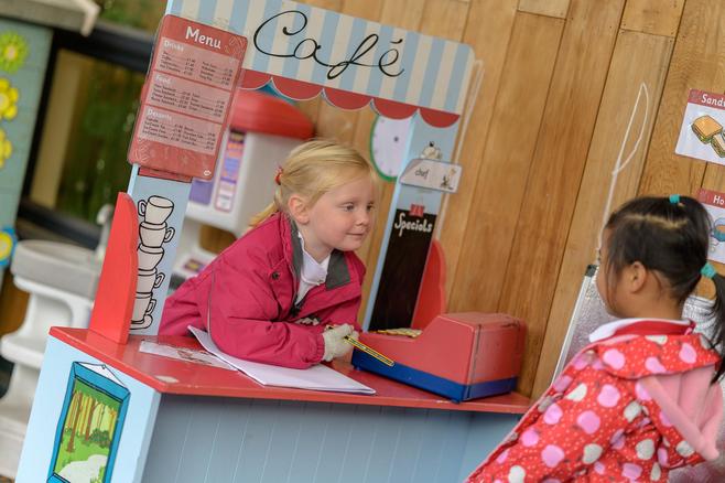 We are able to work inside our room or outside in our own special area which is set up so we can choose activities that interest us. Sometimes we create trails to cycle round; other times we build dens with large-scale construction materials; or use the mud kitchen, sand trays and ramps to learn about the world around us. We have a little stage area which we love to perform on and sometimes we turn it into special environments, like a Waltham Café or builders site.