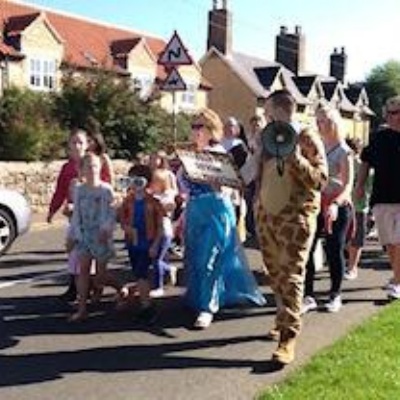 Whole school singing our Charter Fair Chant at Waltham-on-the-Wolds village Charter Fair.