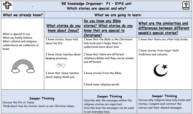 Religious understanding, where children will look at the context of events and explore in depth the way people celebrate and worship through key events and people.