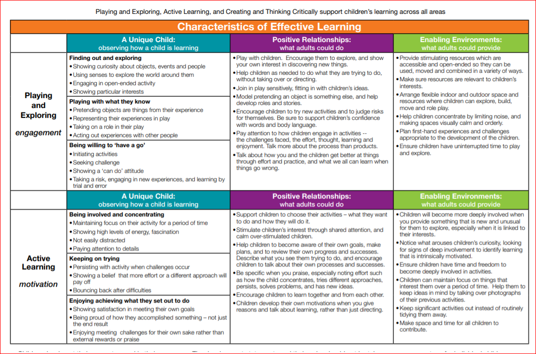 - children learn and develop well in enabling environments, in which their experiences respond to their individual needs and there is a strong partnership between practitioners and parents and/or carers.