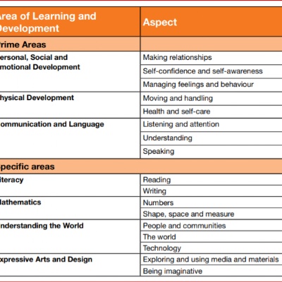 - the areas of learning and development which must shape activities and experiences (educational programmes) for children in all early years settings.