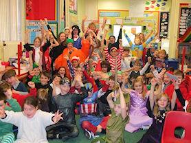 Crazy hair and marvellous costumes celebrated the children’s favourite book characters. Staff and children joined in the fun, including our Headteacher Mrs Hopkins (that’s her looking like the Queen of Hearts!)